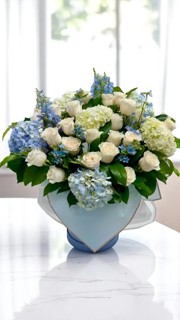 Celebrate life’s sweetest moments with WOWBouquet’s baby boy gift arrangement. This unique design features lush white and blue flowers, themed “It’s a Boy” balloons, and a cuddly teddy bear to welcome the little one in style. It’s the perfect way to congratulate new parents and share joy with their family.