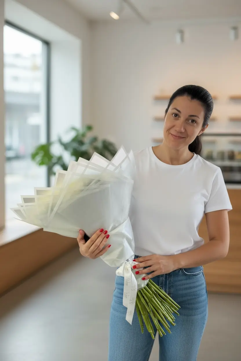 This bright white arrangement makes a thoughtful gift for birthdays, sympathy gestures, anniversaries, or simply to bring calm and light to any room. Wrapped in elegant layered paper and tied with our signature WOWBouquet ribbon, it’s a clean and timeless floral choice.